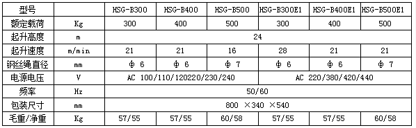 HSG-B500推式微型電動葫蘆技術(shù)參數(shù)表: